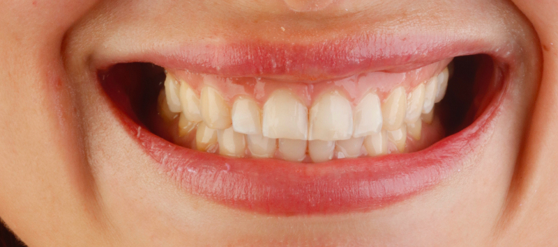 Pacjentka zgłosiła się z problemem starcia przednich zębów, była też niezadowolona z ich wyglądu, który był wynikiem niewielkiej wady zgryzu.